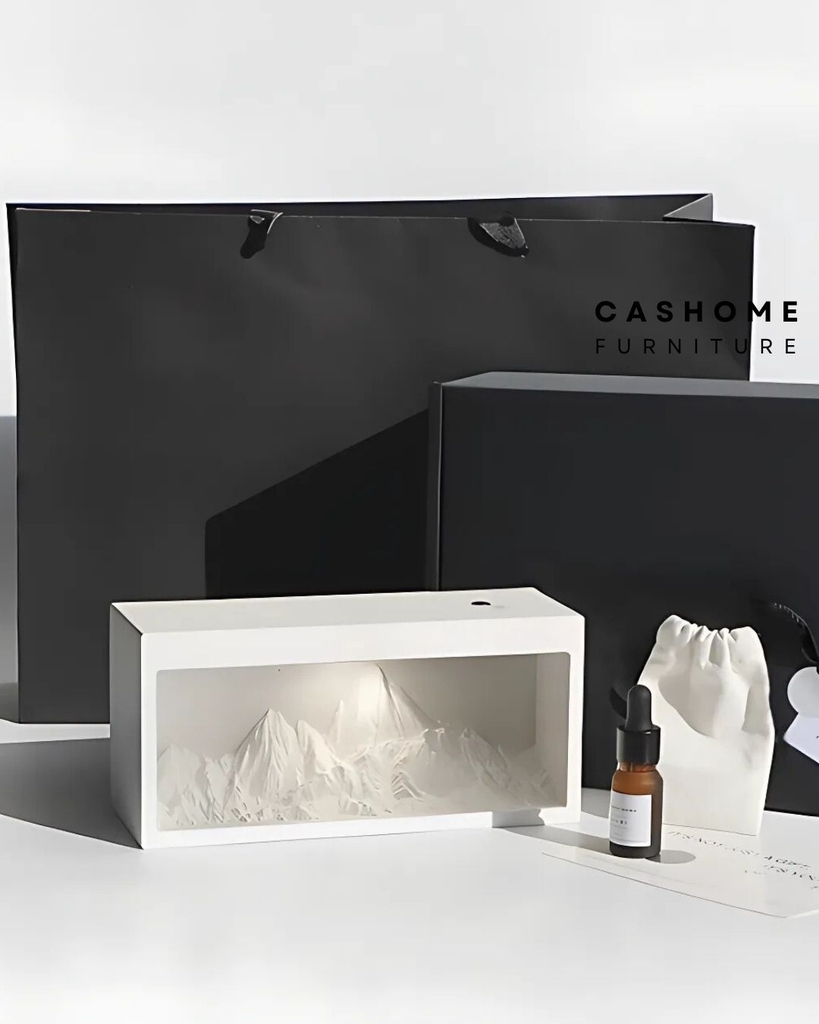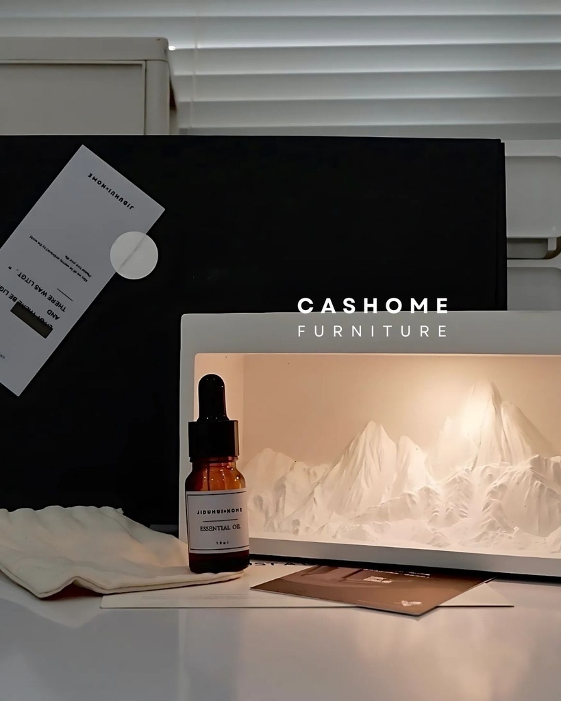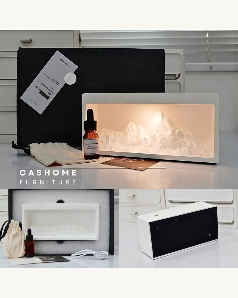 - Fullbox quà tặng gồm: hộp đựng thiết kế, đèn núi, lọ tinh dầu, túi vải đựng lọ, card giấy.