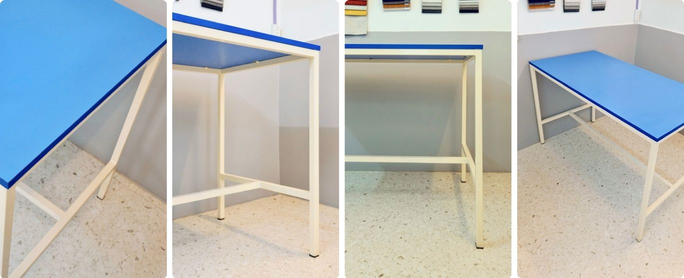 - Chân bàn sắt được sơn tĩnh điện, có thể tùy chọn màu sơn.