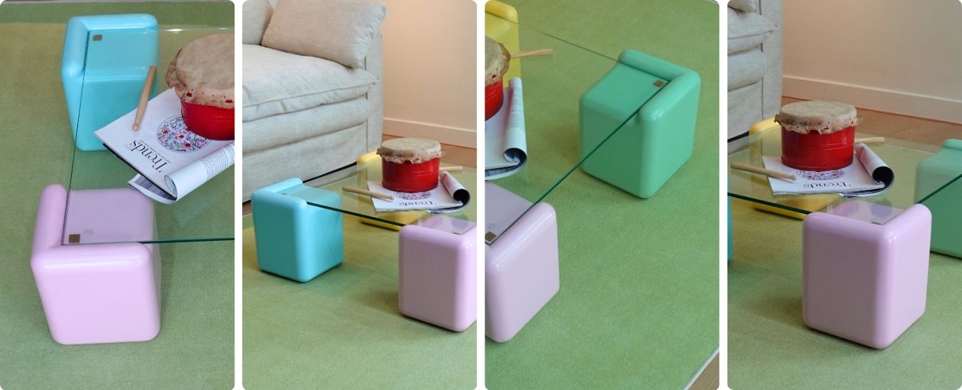 • Mặt bàn lựa chọn: gỗ MDF sơn màu / kính, có thể thay đổi kích thước.